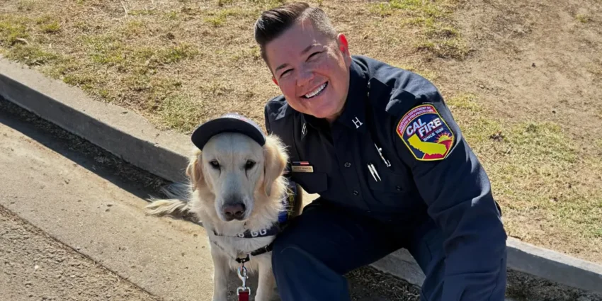 Rebecca Marodi posing with a service dog on a November 12, 2024, post | Source: Instagram/calfirerru | and comfortk9rvc