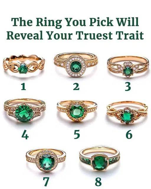 They say the jewelry we choose can speak volumes about our personality. Rings, in particular, are a reflection of our inner essence, symbolizing our deepest traits and preferences. In this fun personality test, the ring you pick from the image above will unveil your truest trait. Which one attracts you the most? Let’s find out!1. The Nature Lover – Free-Spirited and Grounded
