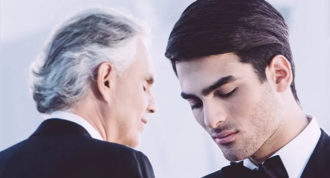 Matteo begins the song, and as his buttery-smooth voice fills the room, the camera pans to Andrea, smiling at the beauty of his son’s voice.