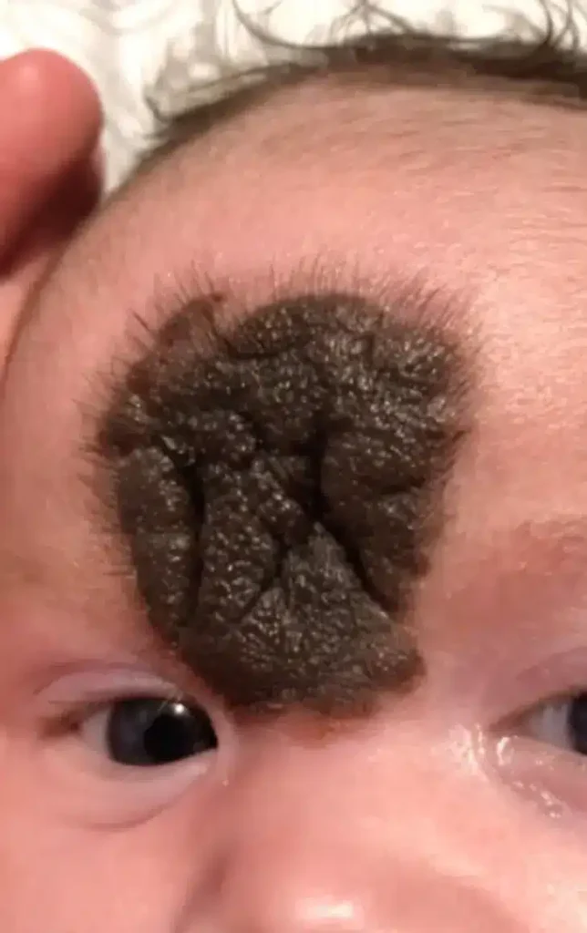 A rare birthmark marked the beginning of a heartening moment for a relieved mother, as her baby girl bid farewell to it on her forehead, despite initial criticism from medical authorities.