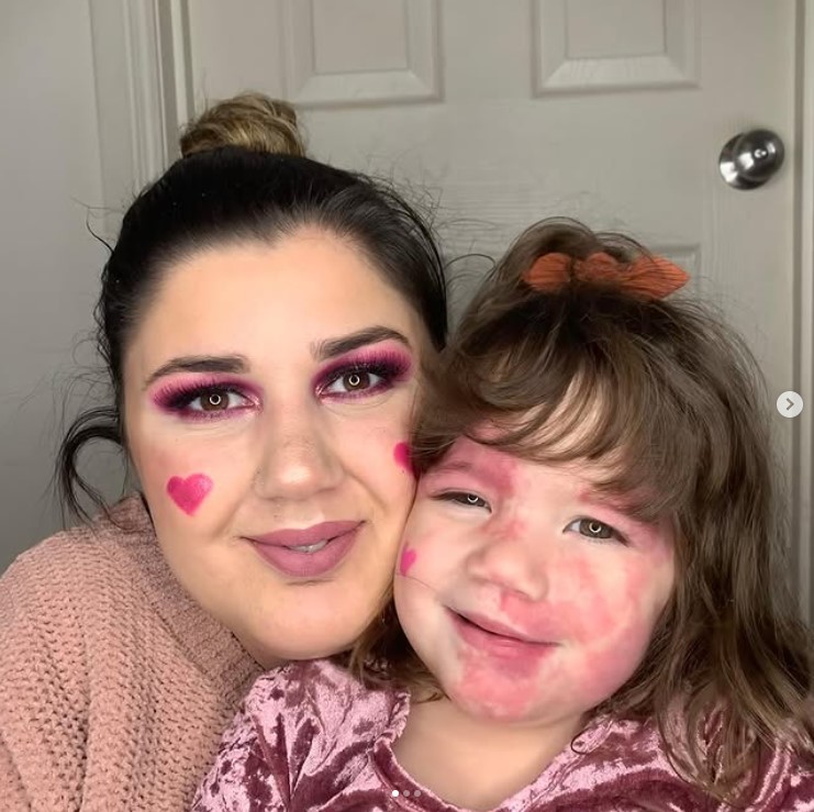 “I got the idea from vascular birthmark awareness day, where they encourage people to paint a heart on the cheeks. Initially I just did the heart with my makeup look but then I thought why don’t I go all out and do Angelica’s port wine stain,” the mom said, according to The Epoch Times.