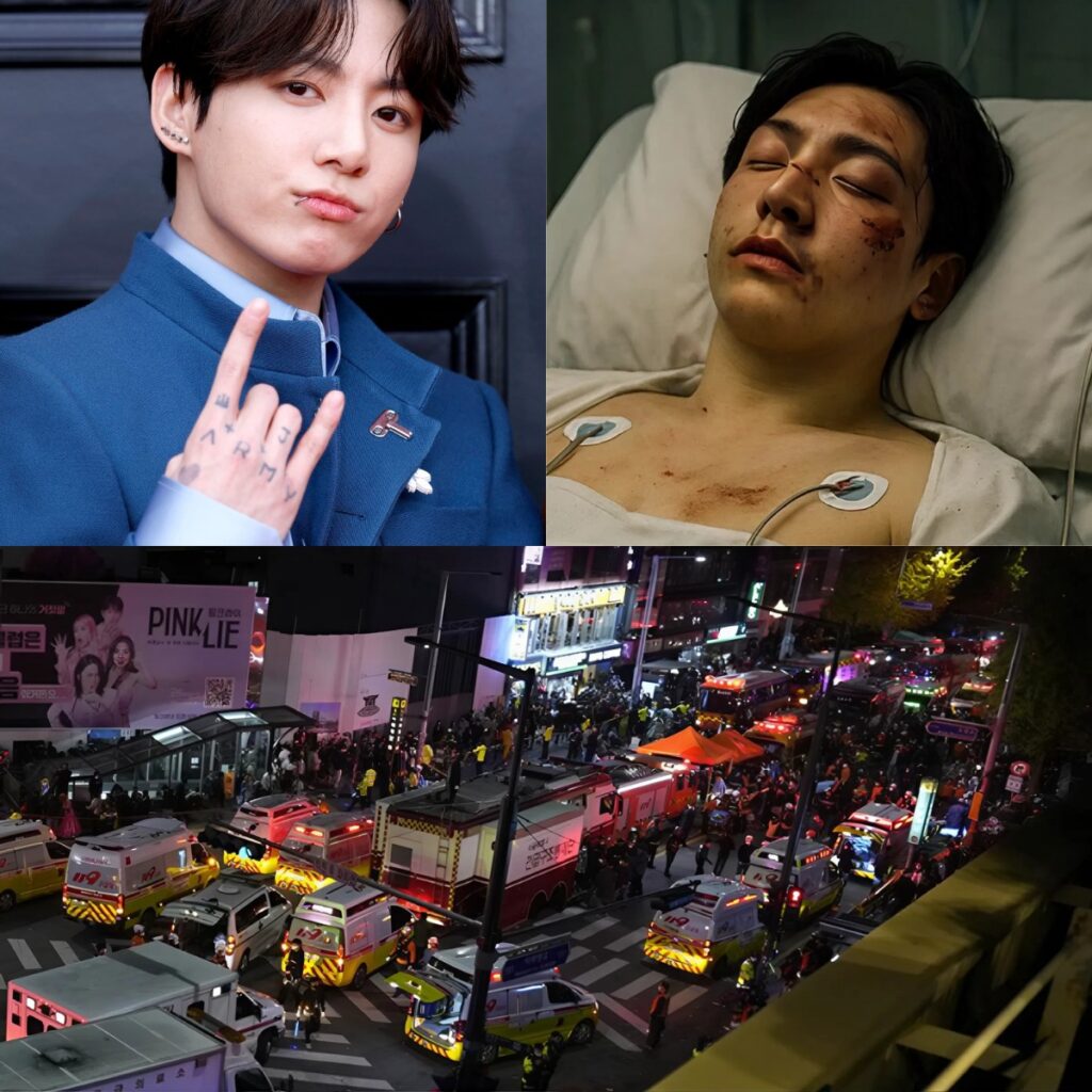 Witnesses at the scene described confusion, the screech of tires, and the moment everything spun out of control. Paramedics rushed in, their voices urgent, their movements frantic. A black car lay crumpled under the streetlights, its once sleek frame now a fragile cage of metal. And inside — the youngest member of BTS, a global icon, fighting against time itself.